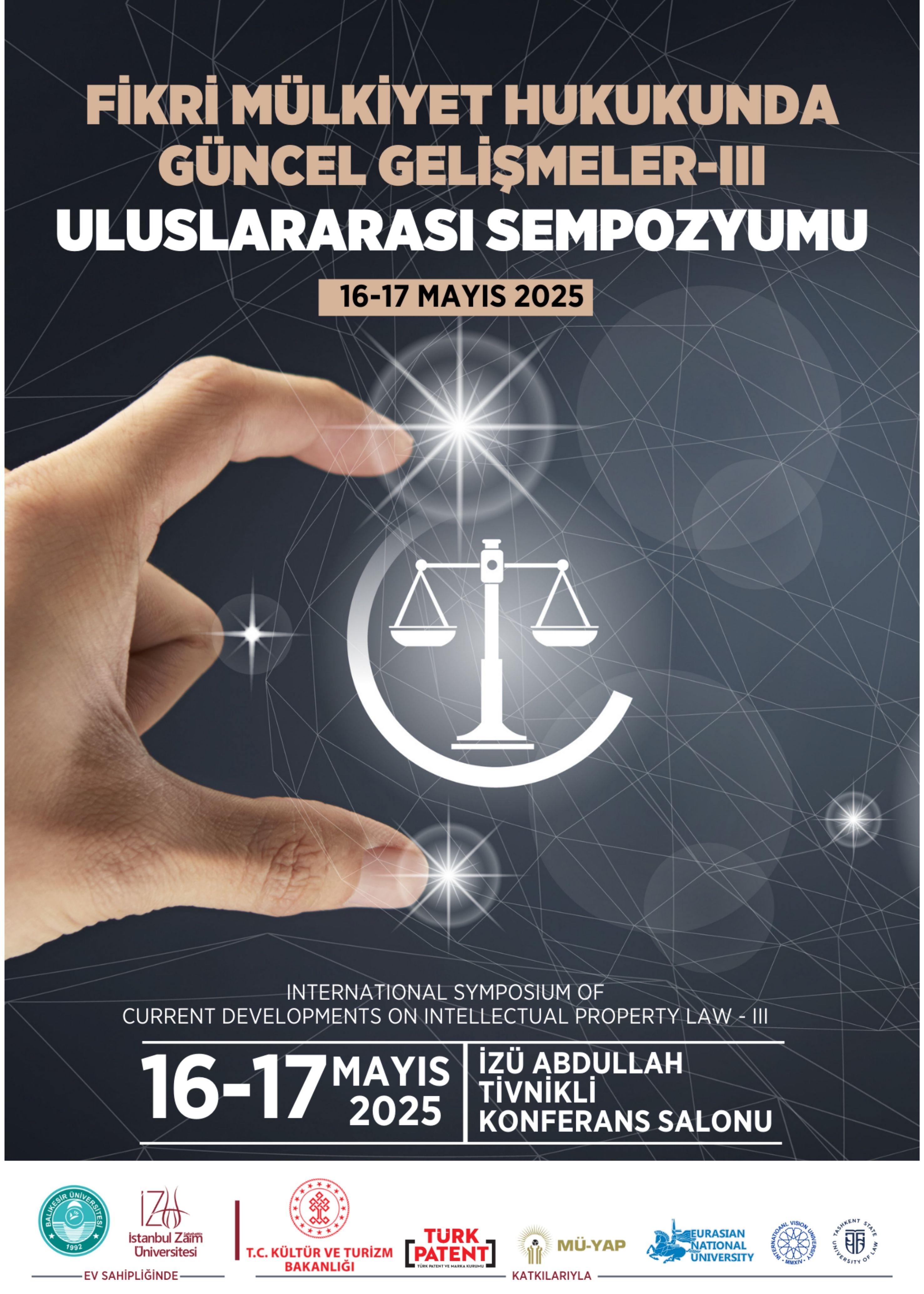 3'üncüsünü düzenlediğimiz "Fikri Mülkiyet Hukukunda Güncel Gelişmeler" uluslararası sempozyumuna destek veren tüm taraflara teşekkürlerimi sunarım.
